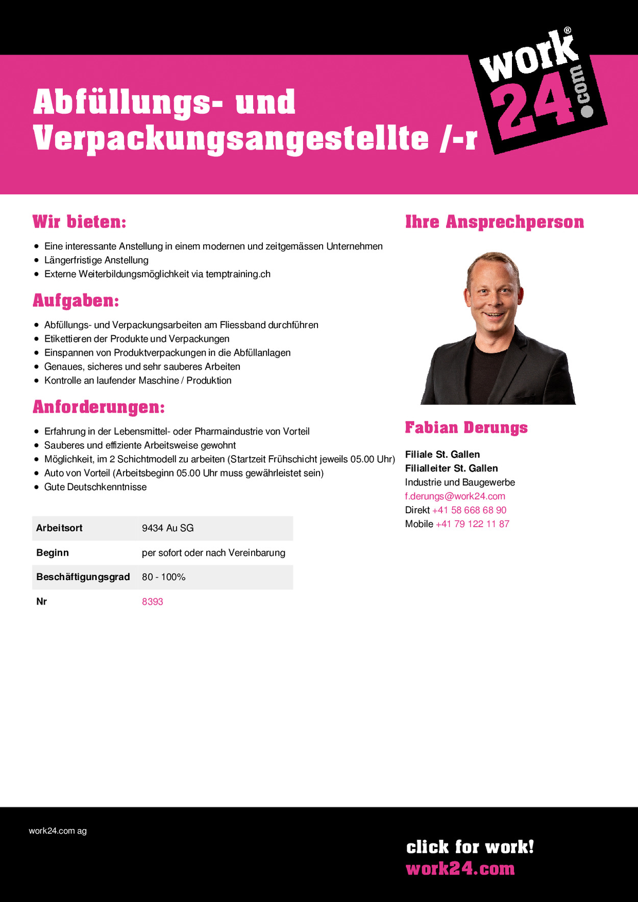 Abfüllungs- und Verpackungsangestellte /-r in Au SG