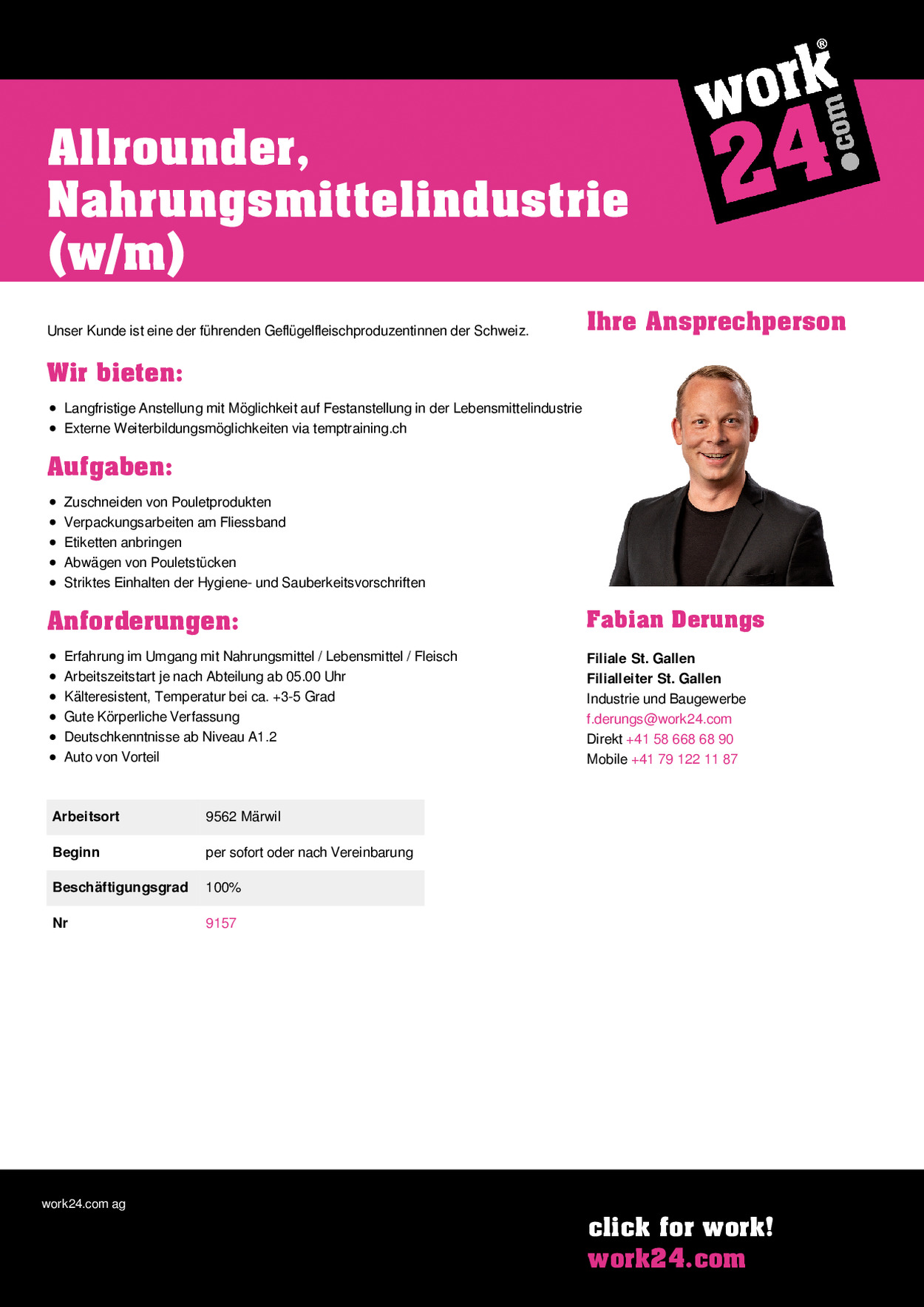 Allrounder, Nahrungsmittelindustrie (w/m) in Märwil