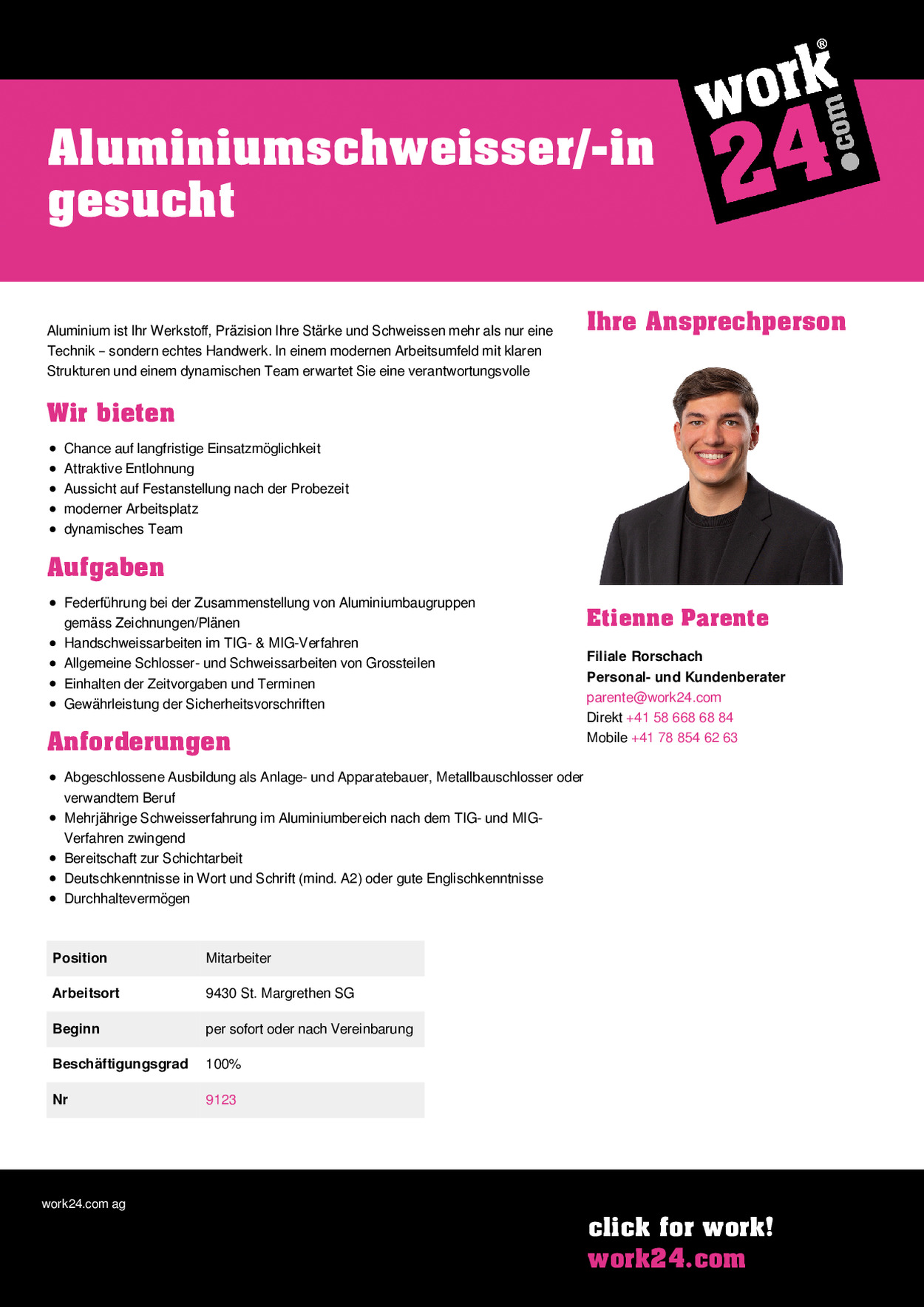 | Arbeitsort | 9430 St. Margrethen SG |