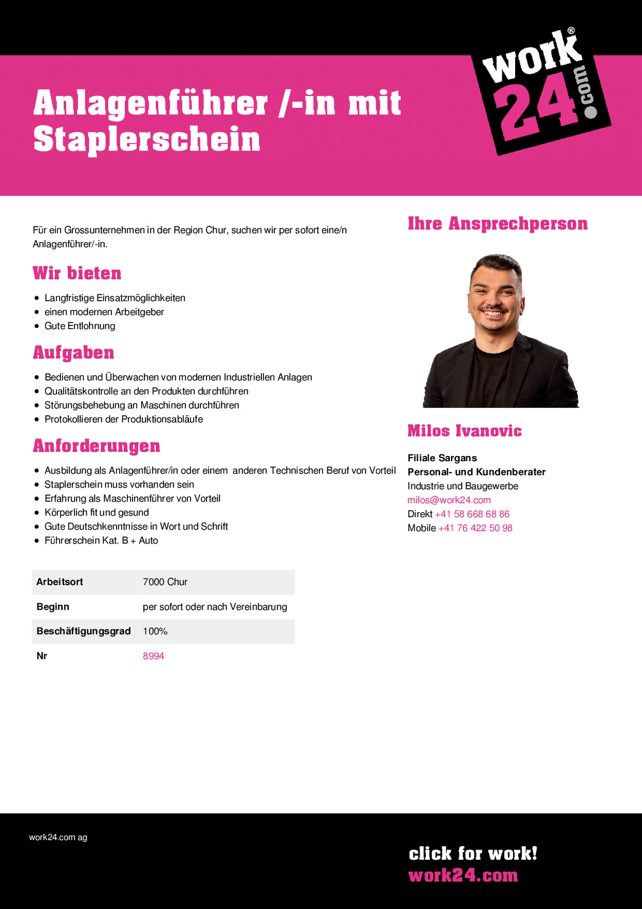 Anlagenführer /-in mit Staplerschein in Chur