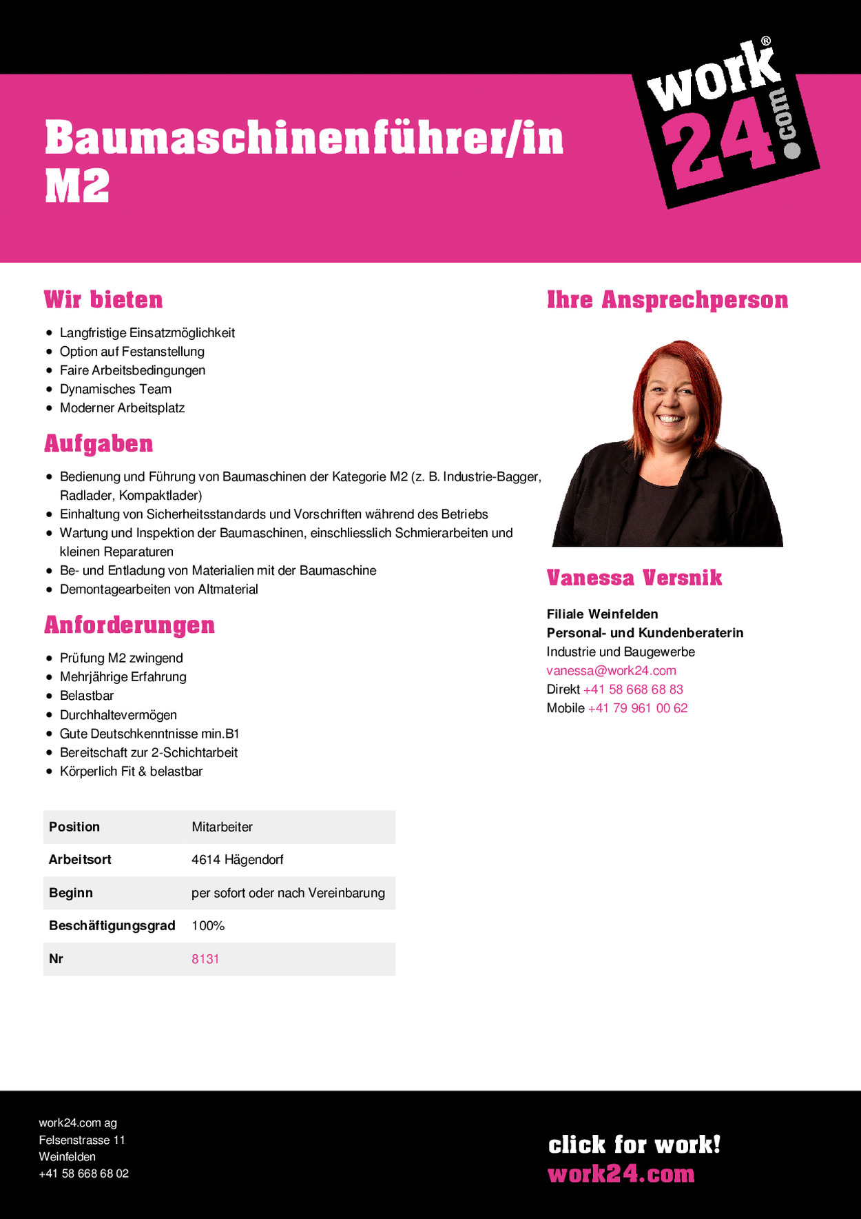 - Bedienung und Führung von Baumaschinen der Kategorie M2 (z. B. Industrie-Bagger, Radlader, Kompaktlader)