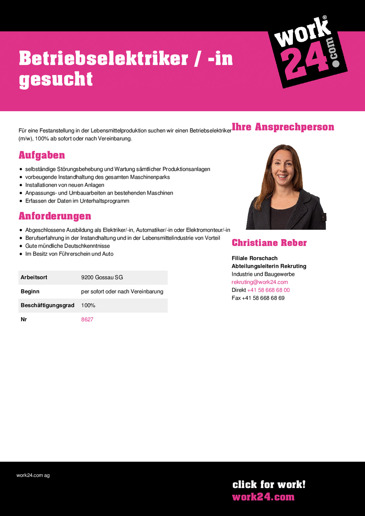 Für eine Festanstellung in der Lebensmittelproduktion suchen wir einen Betriebselektriker (m/w), 100% ab sofort oder nach Vereinbarung.