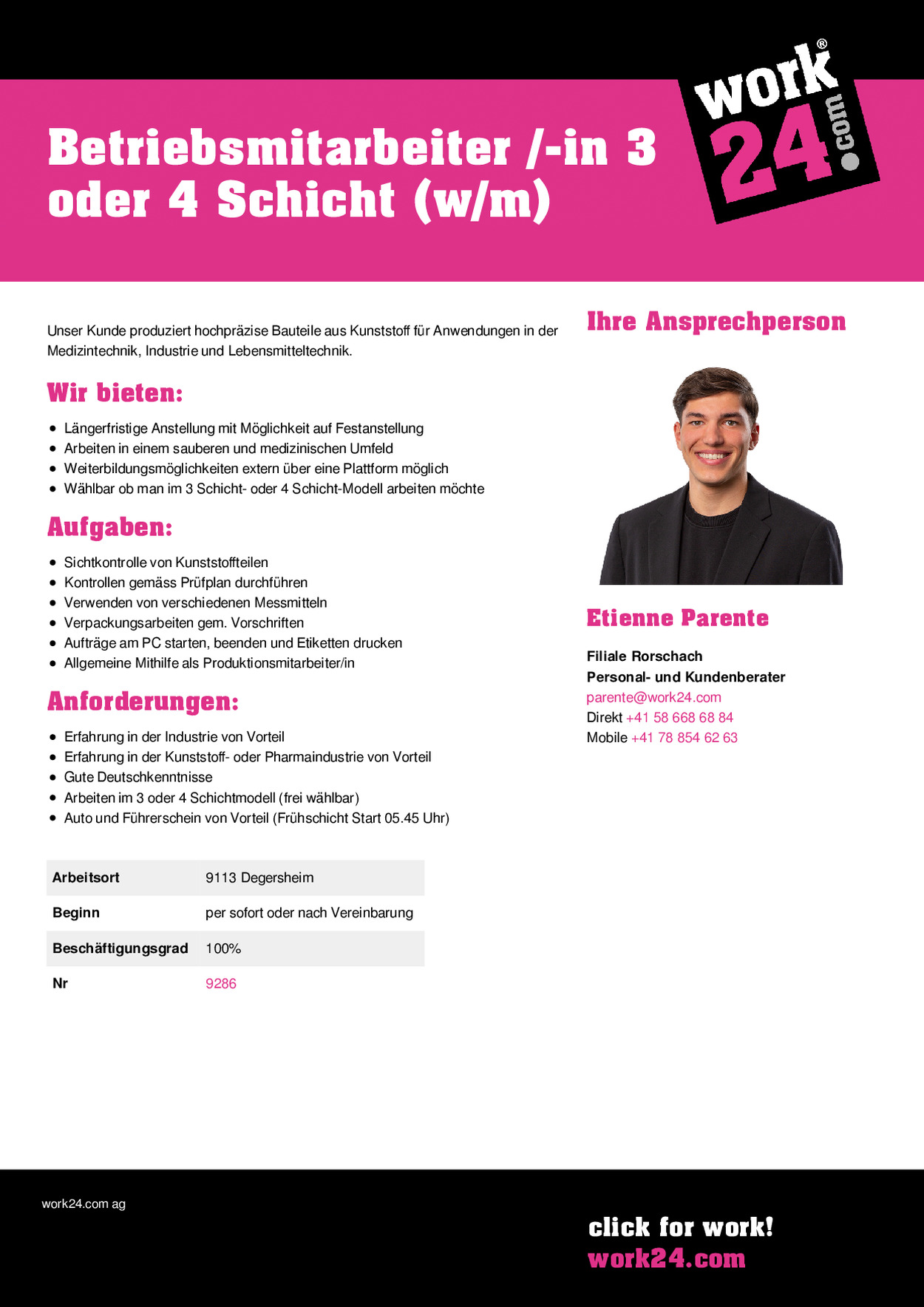 - Arbeiten im 3 oder 4 Schichtmodell (frei wählbar)