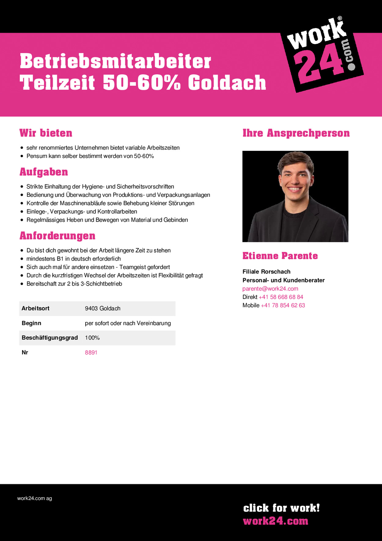 Betriebsmitarbeiter Teilzeit 50-60% Goldach in Goldach