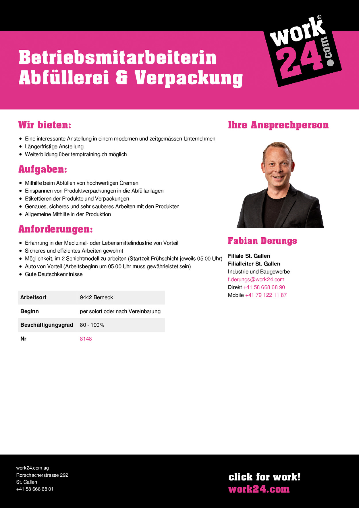 Betriebsmitarbeiterin Abfüllerei & Verpackung in Berneck