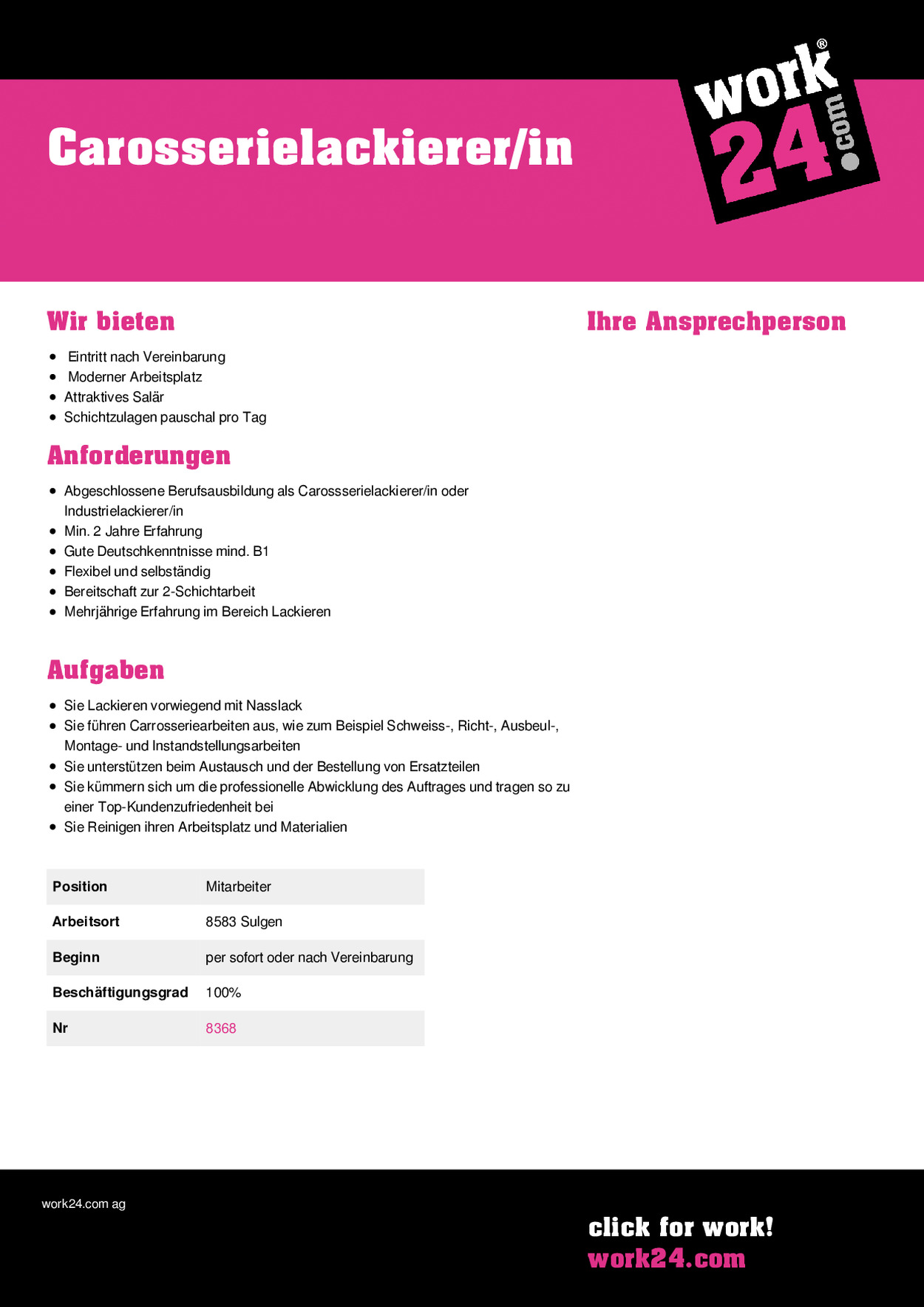 - Abgeschlossene Berufsausbildung als Carossserielackierer/in oder Industrielackierer/in
