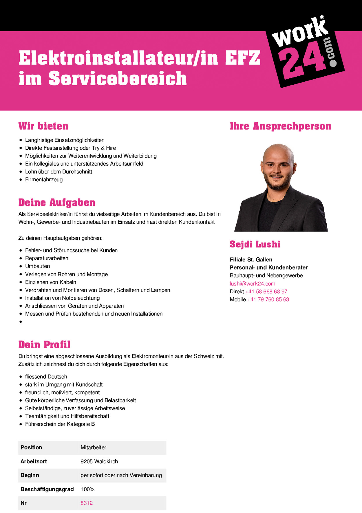 Als Serviceelektriker/in führst du vielseitige Arbeiten im Kundenbereich aus. Du bist in Wohn-, Gewerbe- und Industriebauten im Einsatz und hast direkten Kundenkontakt