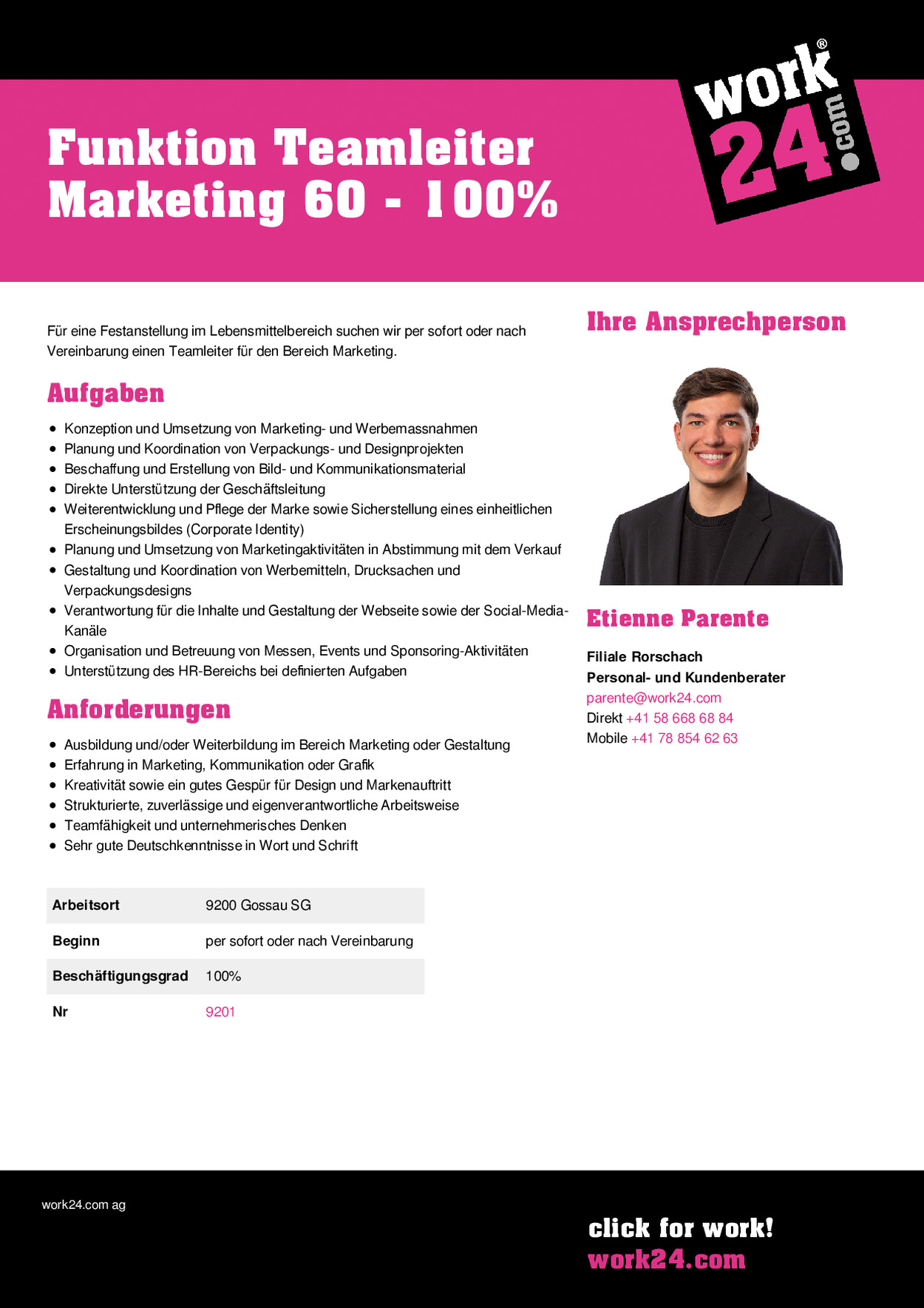 Funktion Teamleiter Marketing 60 - 100% in Gossau SG