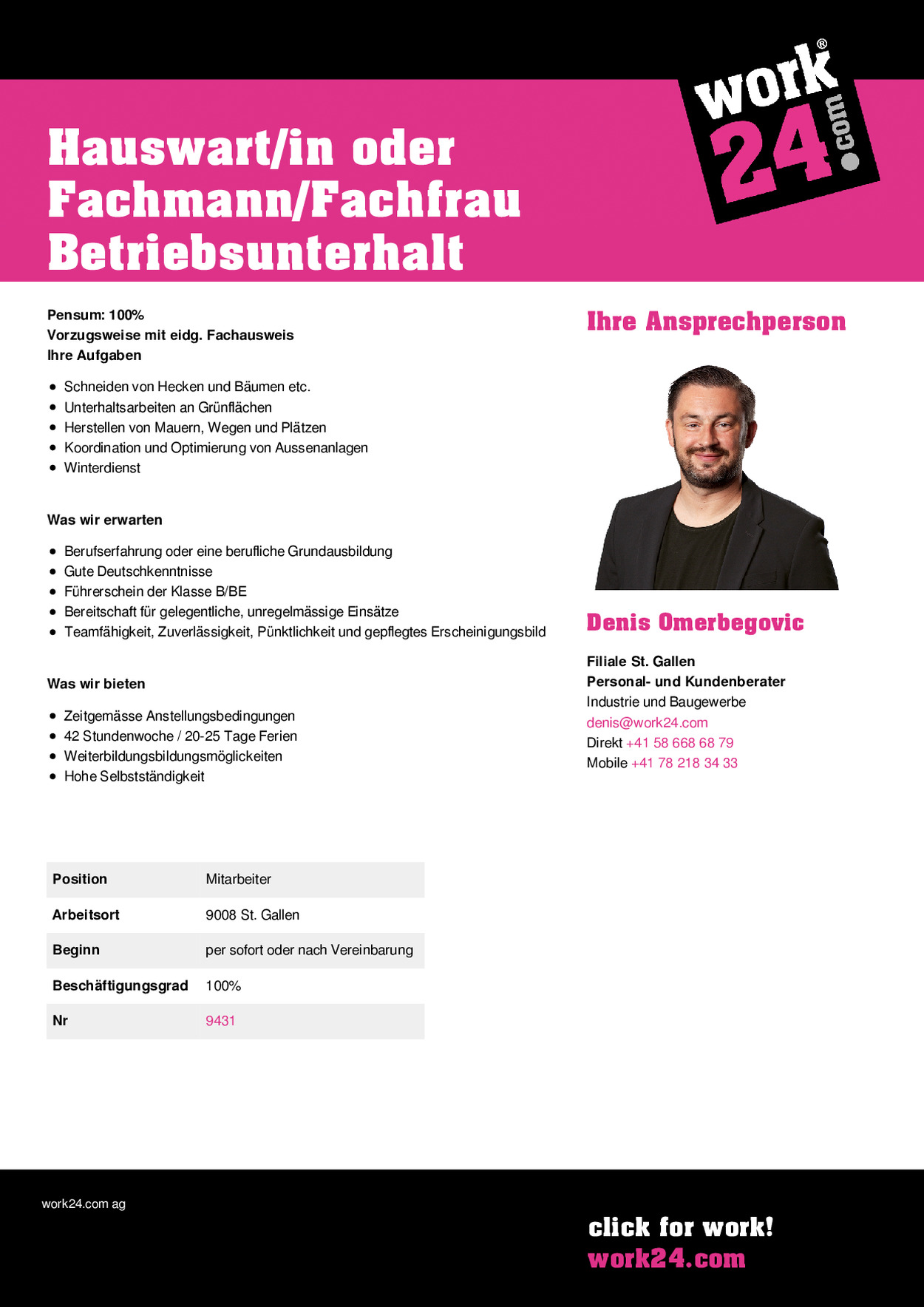 Hauswart/in oder Fachmann/Fachfrau Betriebsunterhalt in St. Gallen