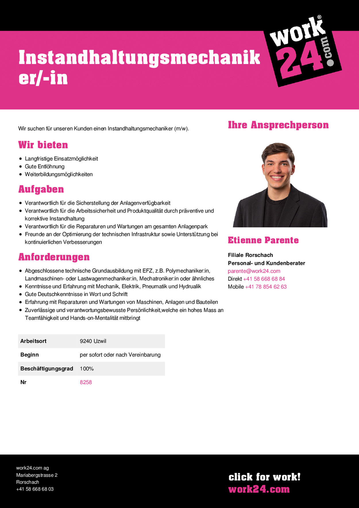 - Zuverlässige und verantwortungsbewusste Persönlichkeit,welche ein hohes Mass an Teamfähigkeit und Hands-on-Mentalität mitbringt