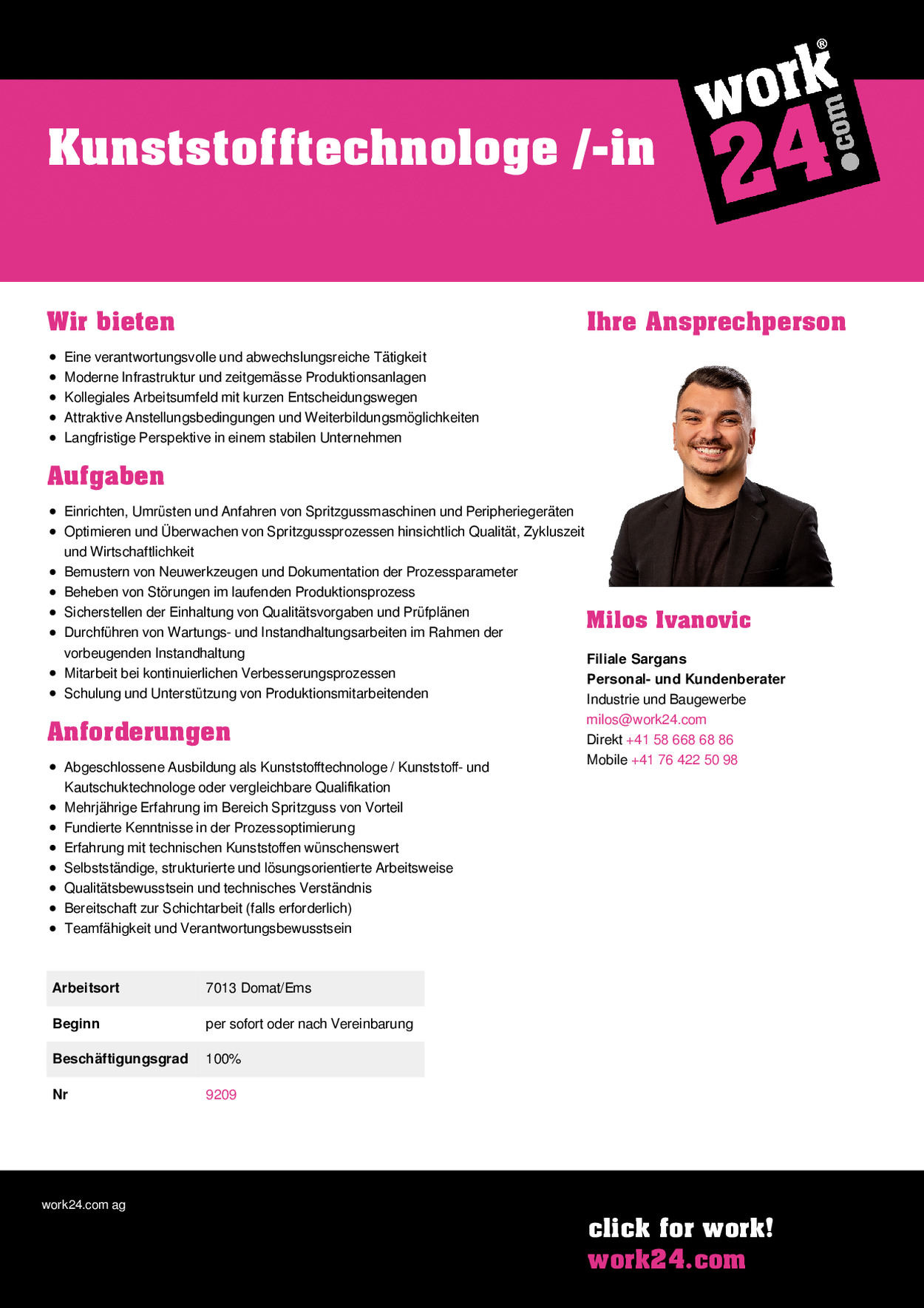 | Arbeitsort | 7013 Domat/Ems |