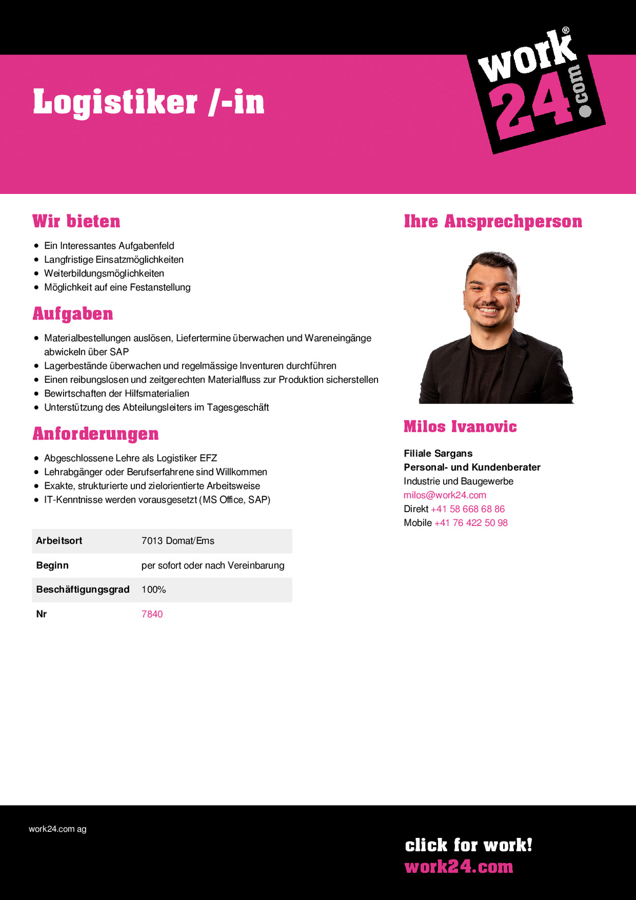 | Arbeitsort | 7013 Domat/Ems |