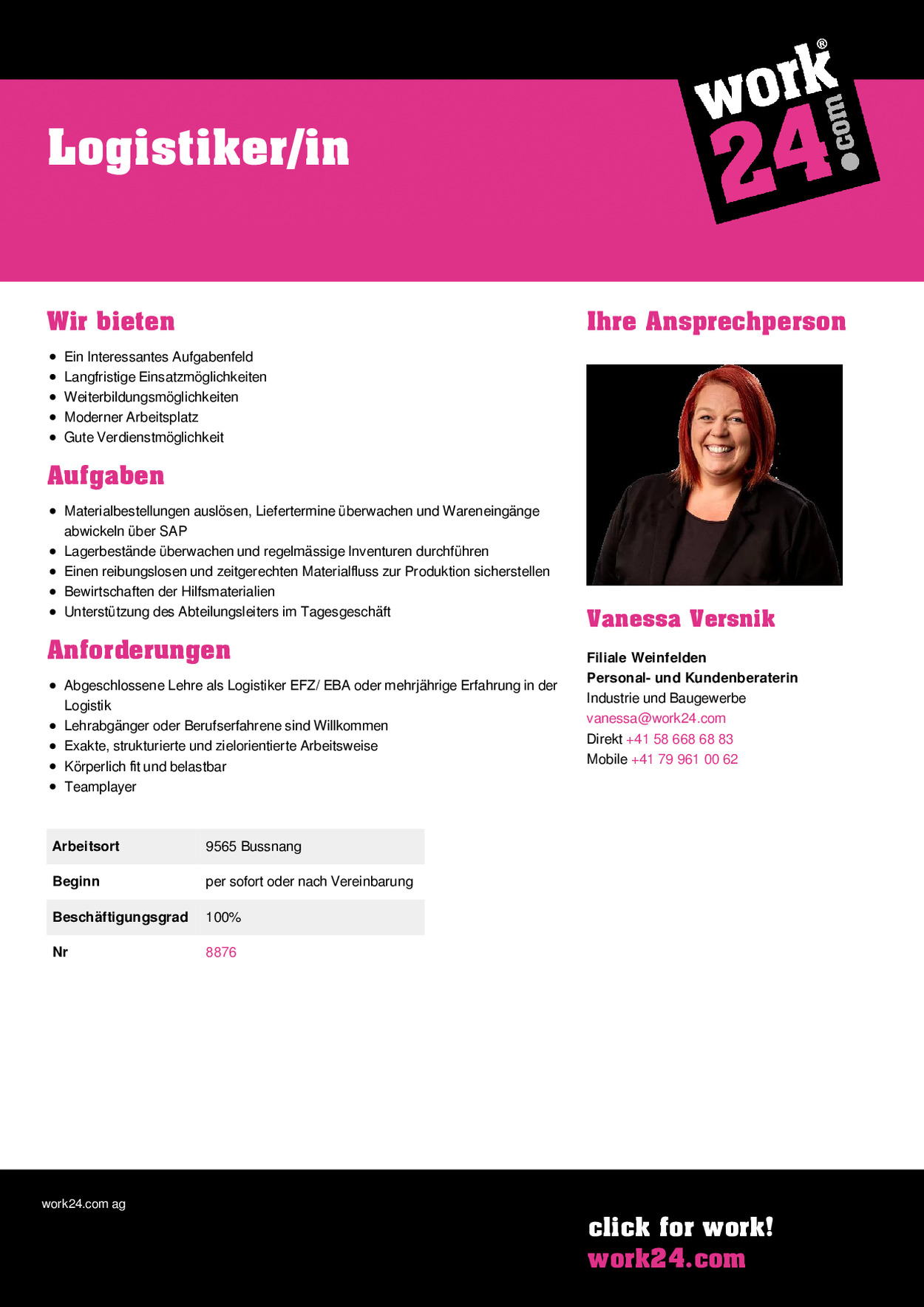 | Beginn | per sofort oder nach Vereinbarung |