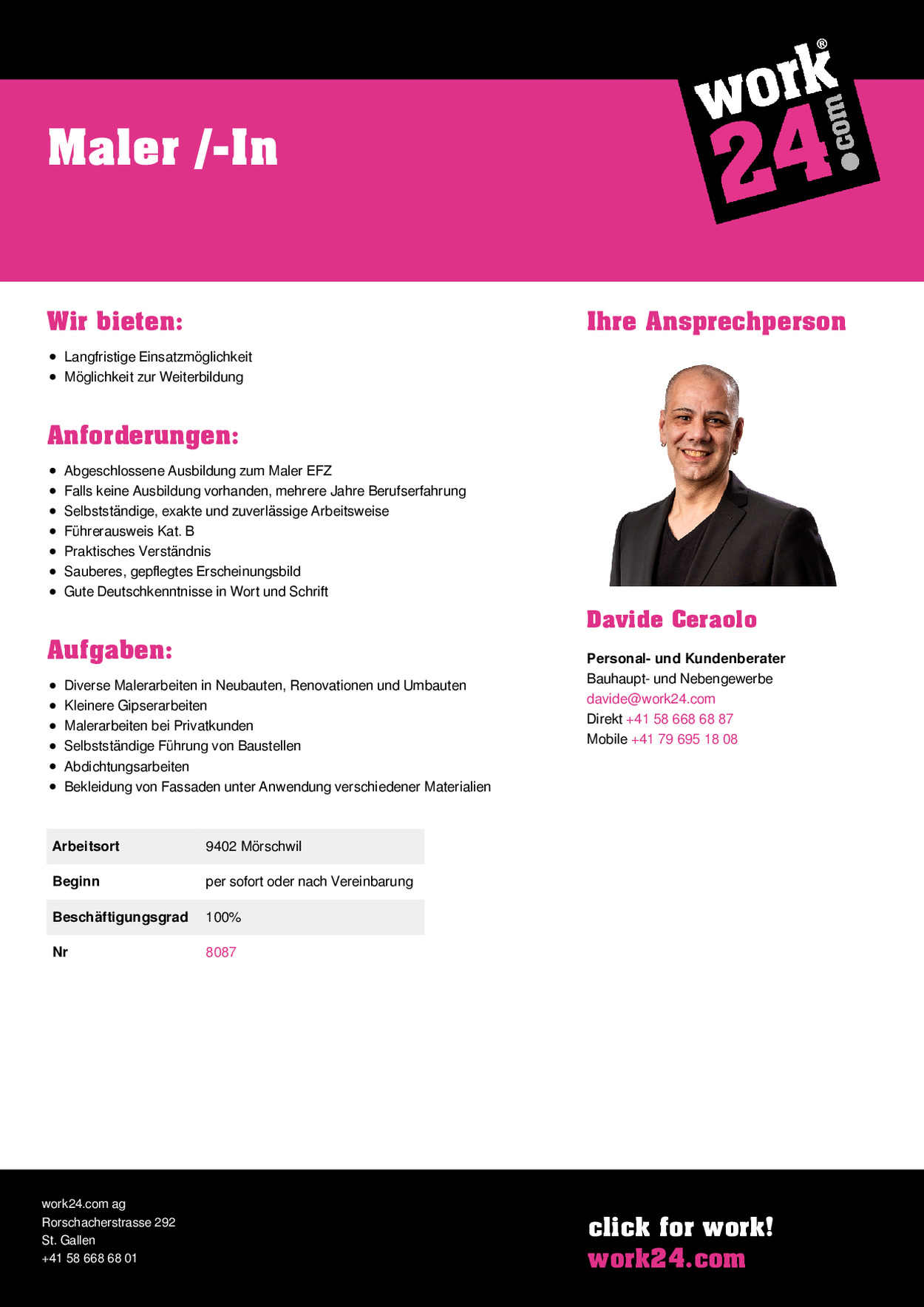 - Abgeschlossene Ausbildung zum Maler EFZ