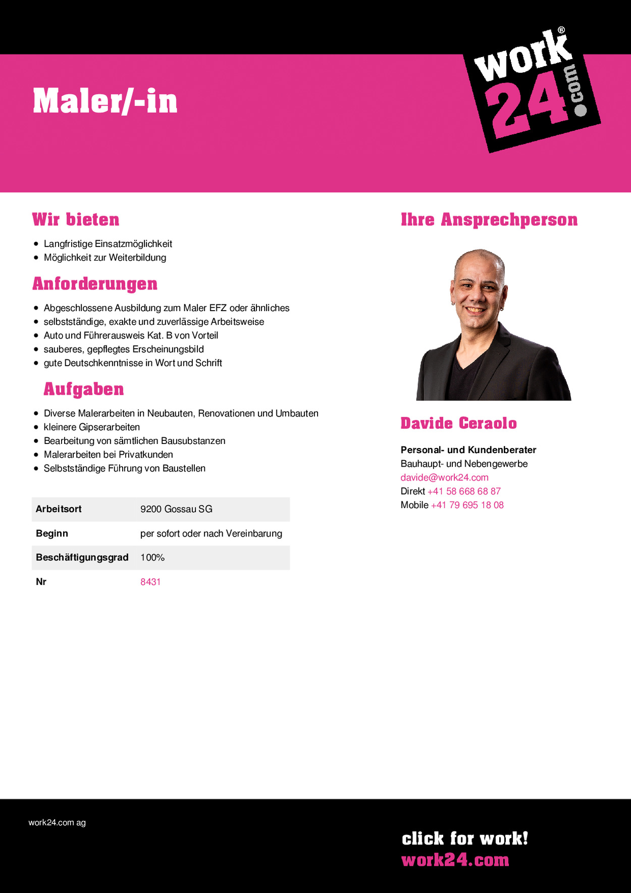 - Abgeschlossene Ausbildung zum Maler EFZ oder ähnliches