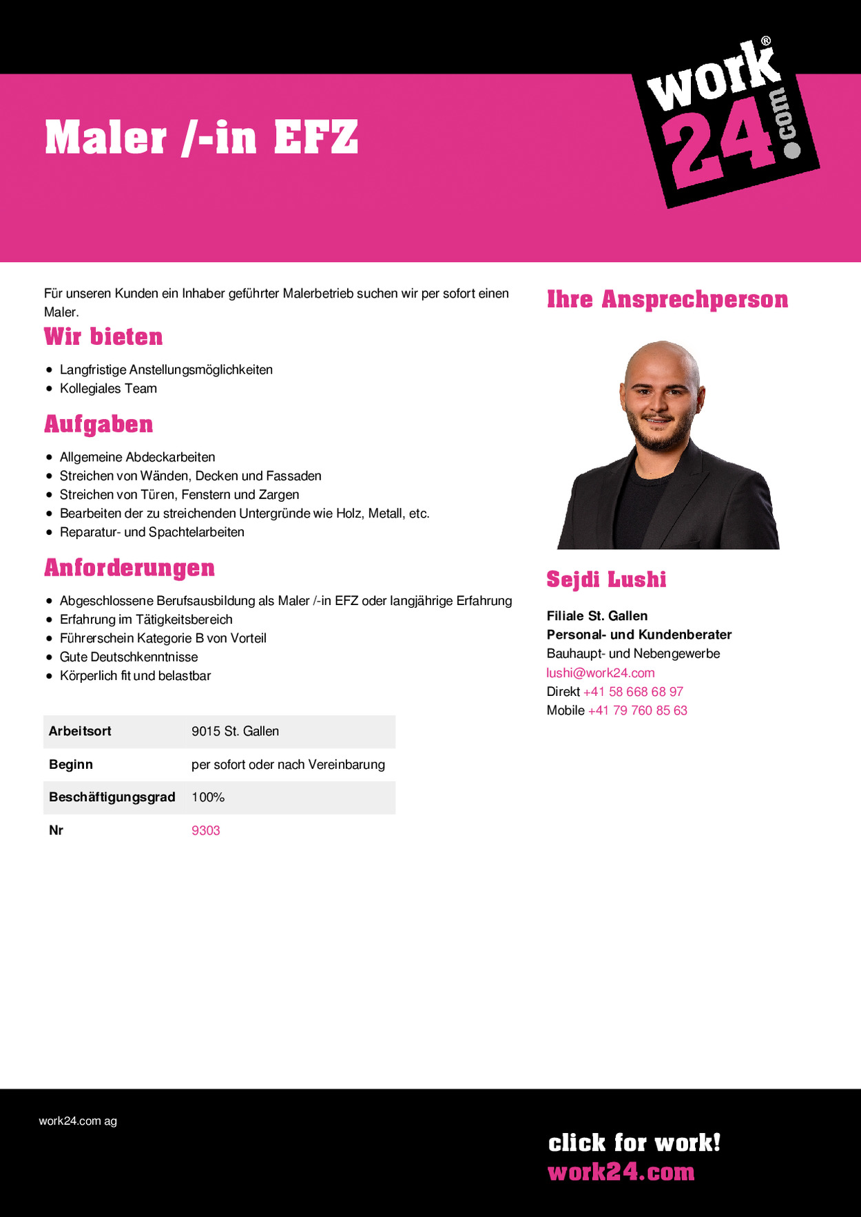 | Arbeitsort | 9015 St. Gallen |