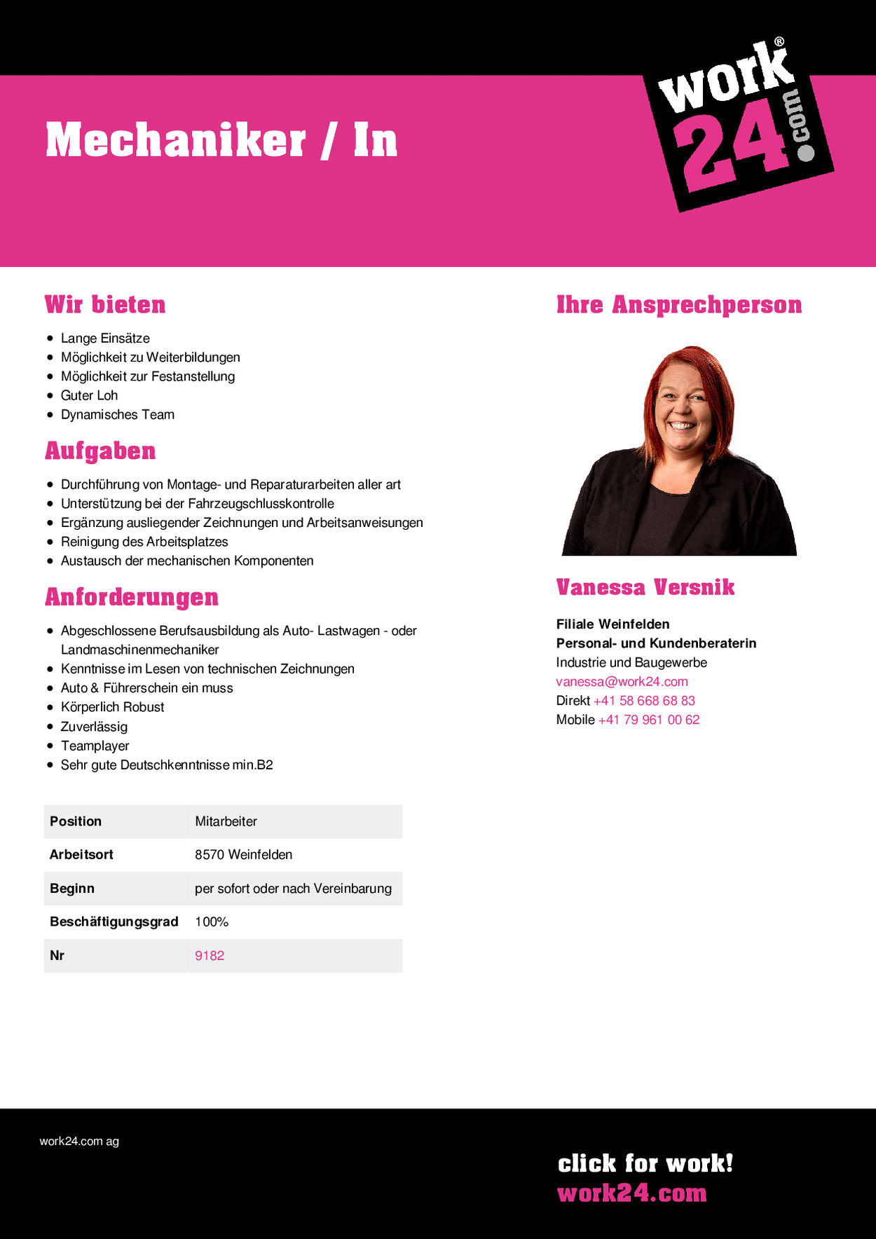- Abgeschlossene Berufsausbildung als Auto- Lastwagen - oder Landmaschinenmechaniker