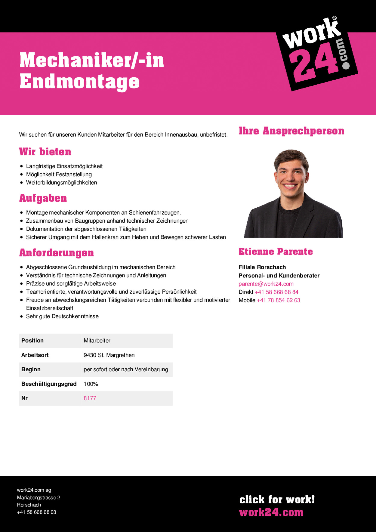- Abgeschlossene Grundausbildung im mechanischen Bereich