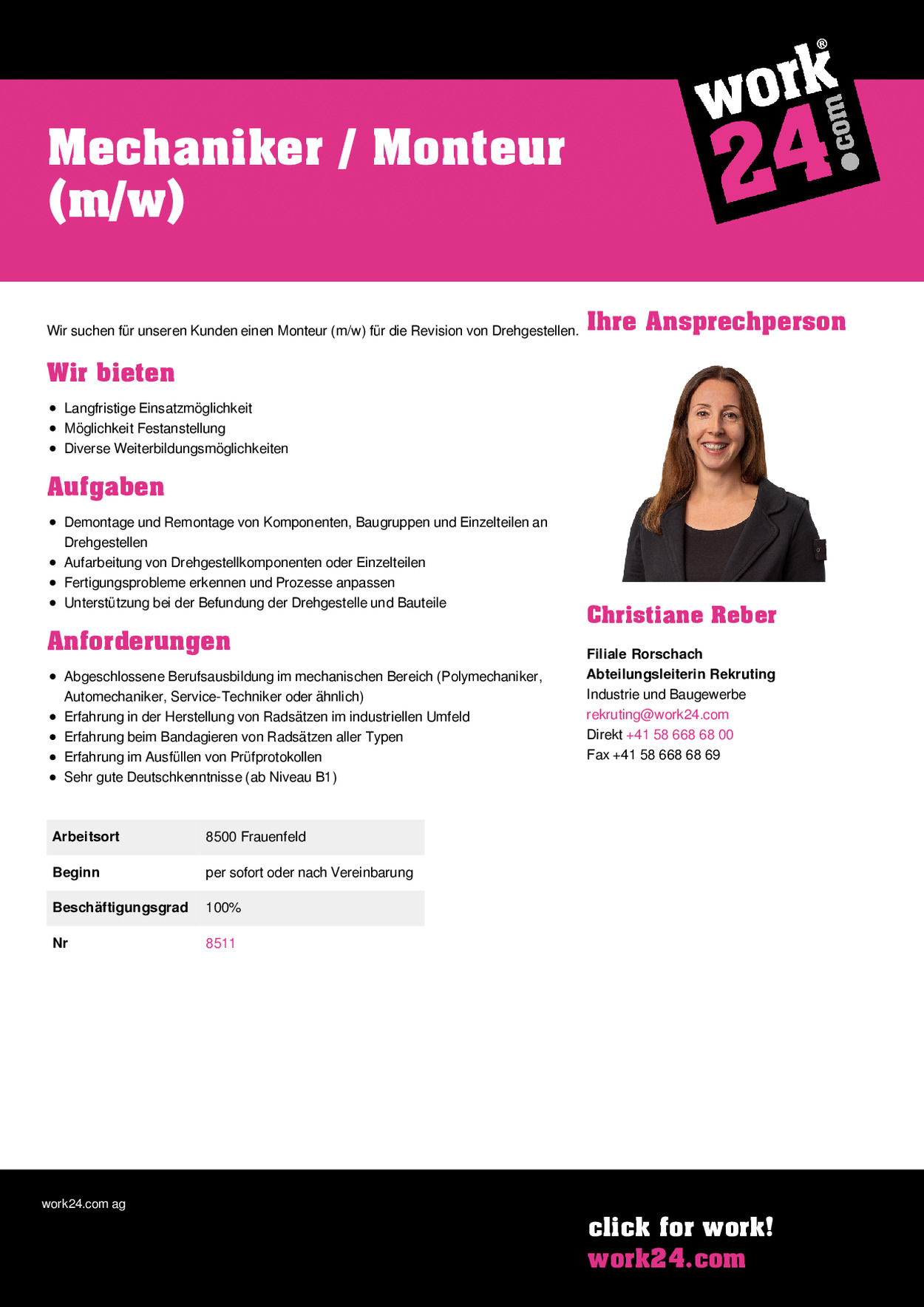 Mechaniker / Monteur (m/w) in Frauenfeld