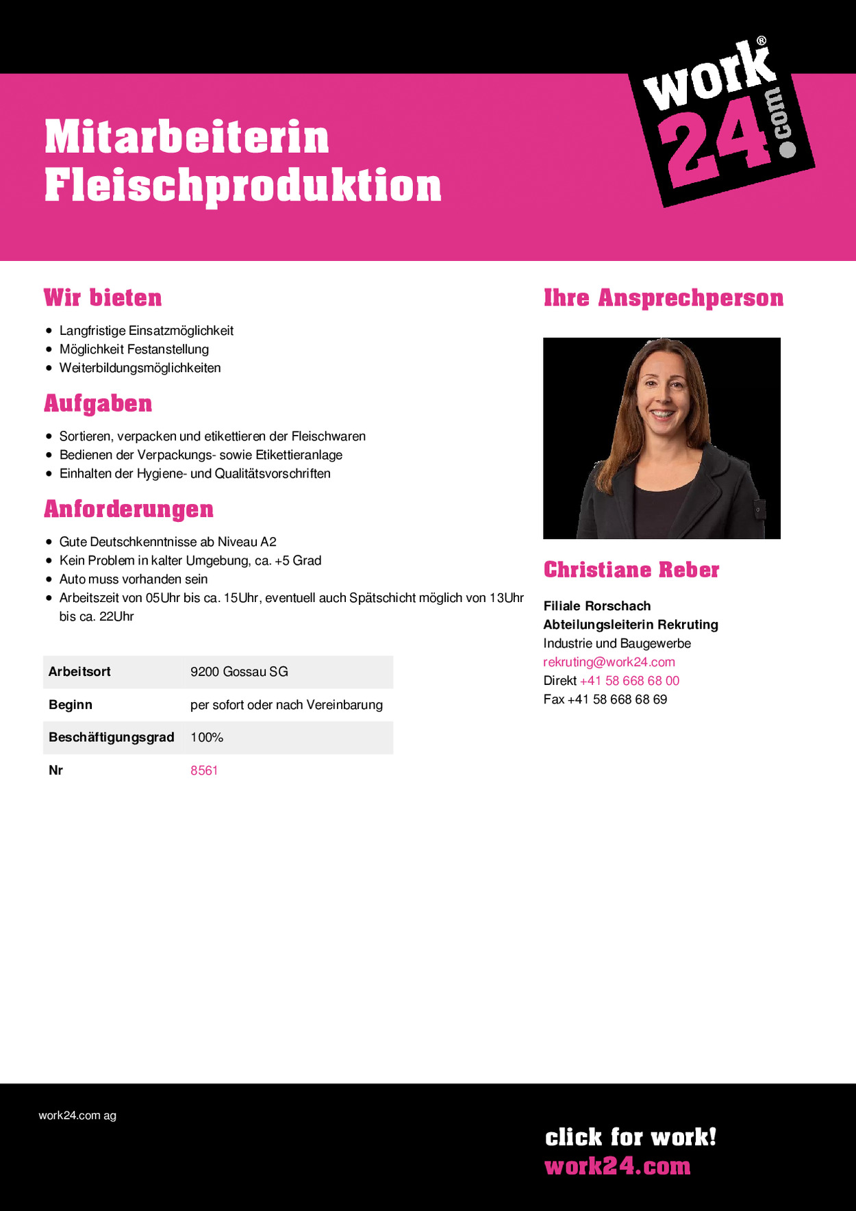 Mitarbeiterin Fleischproduktion in Gossau SG