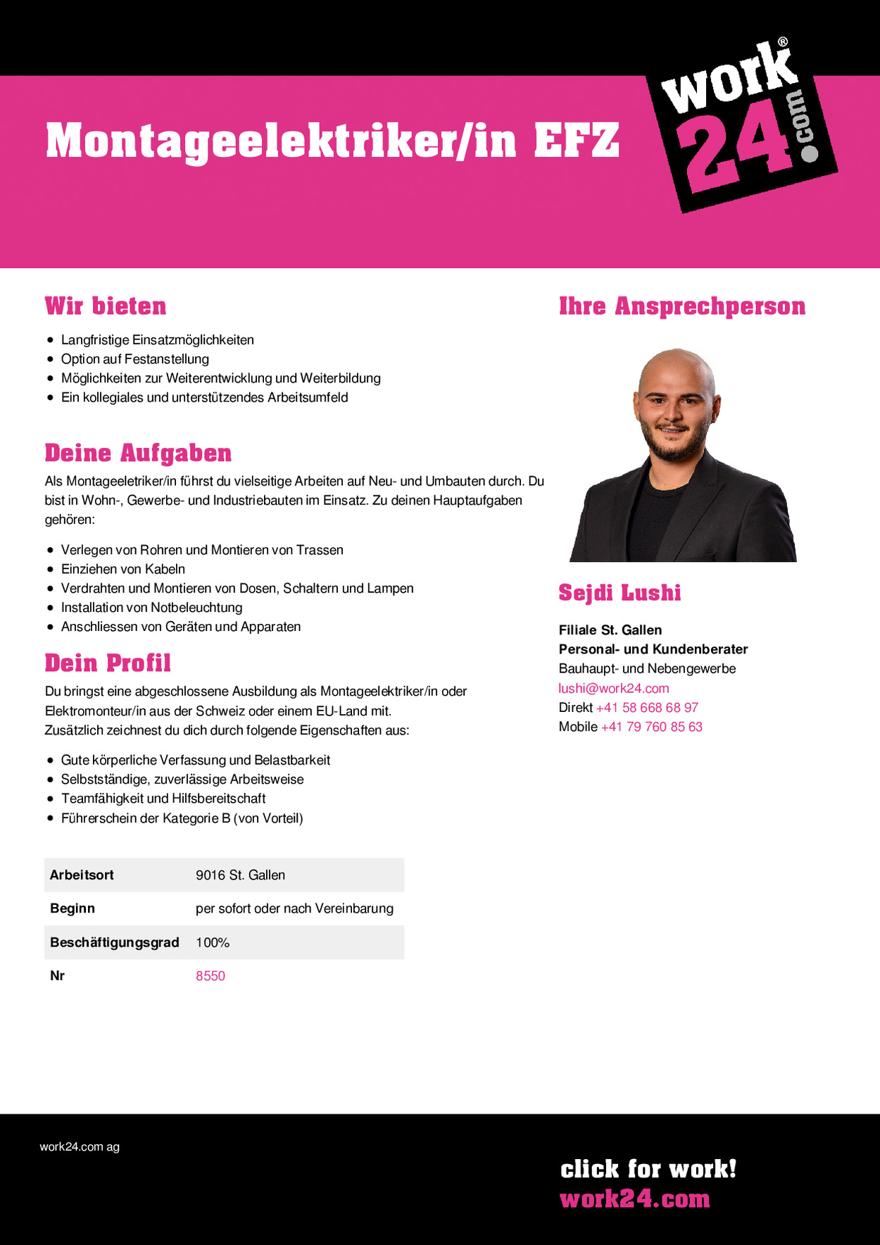 Du bringst eine abgeschlossene Ausbildung als Montageelektriker/in oder Elektromonteur/in aus der Schweiz oder einem EU-Land mit.