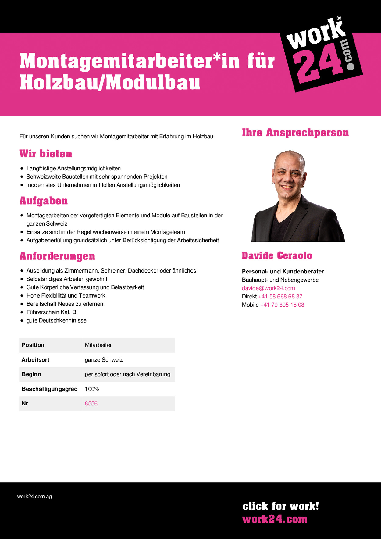 | Arbeitsort | ganze Schweiz |