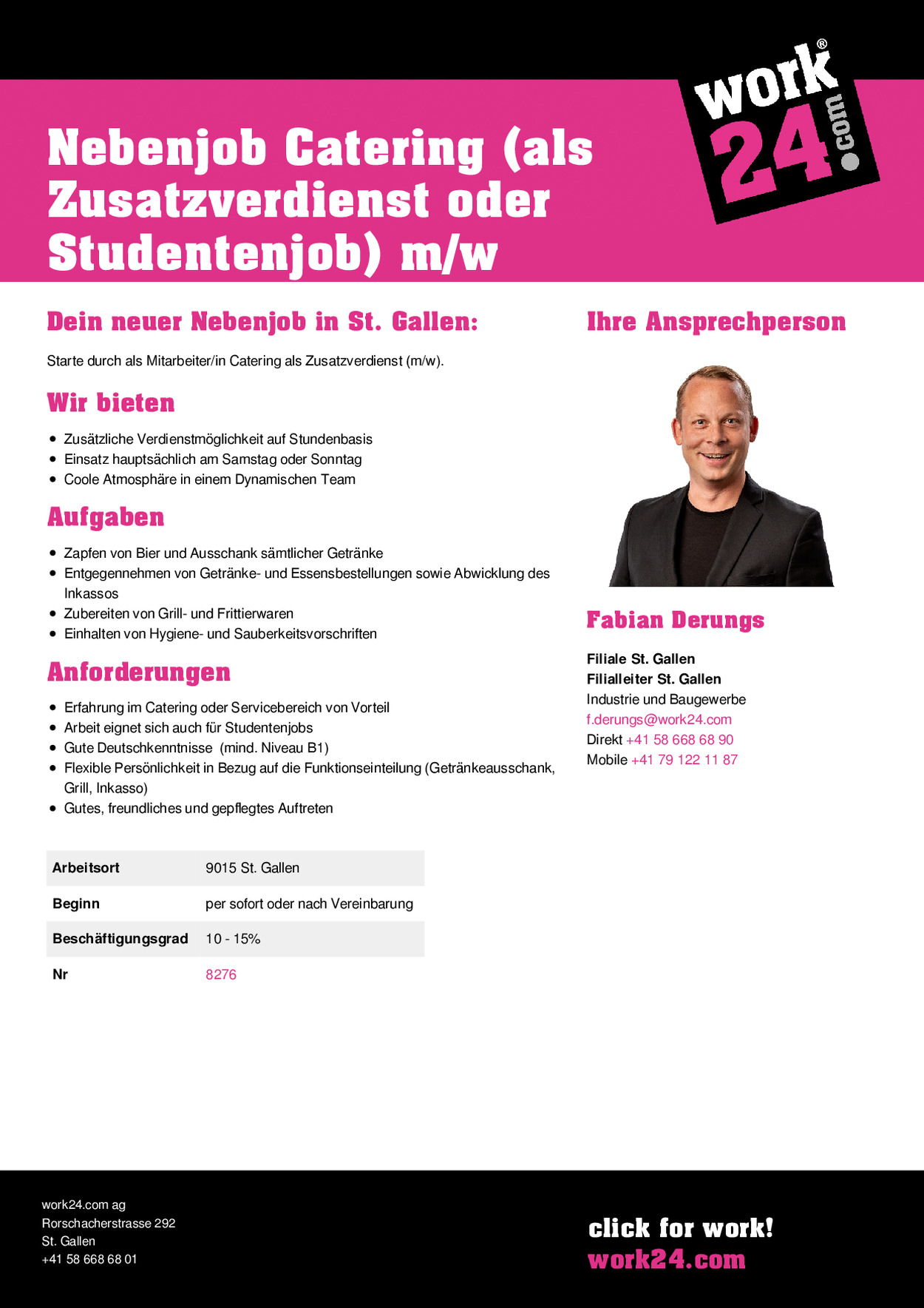 Nebenjob Catering (als Zusatzverdienst oder Studentenjob) m/w in St. Gallen