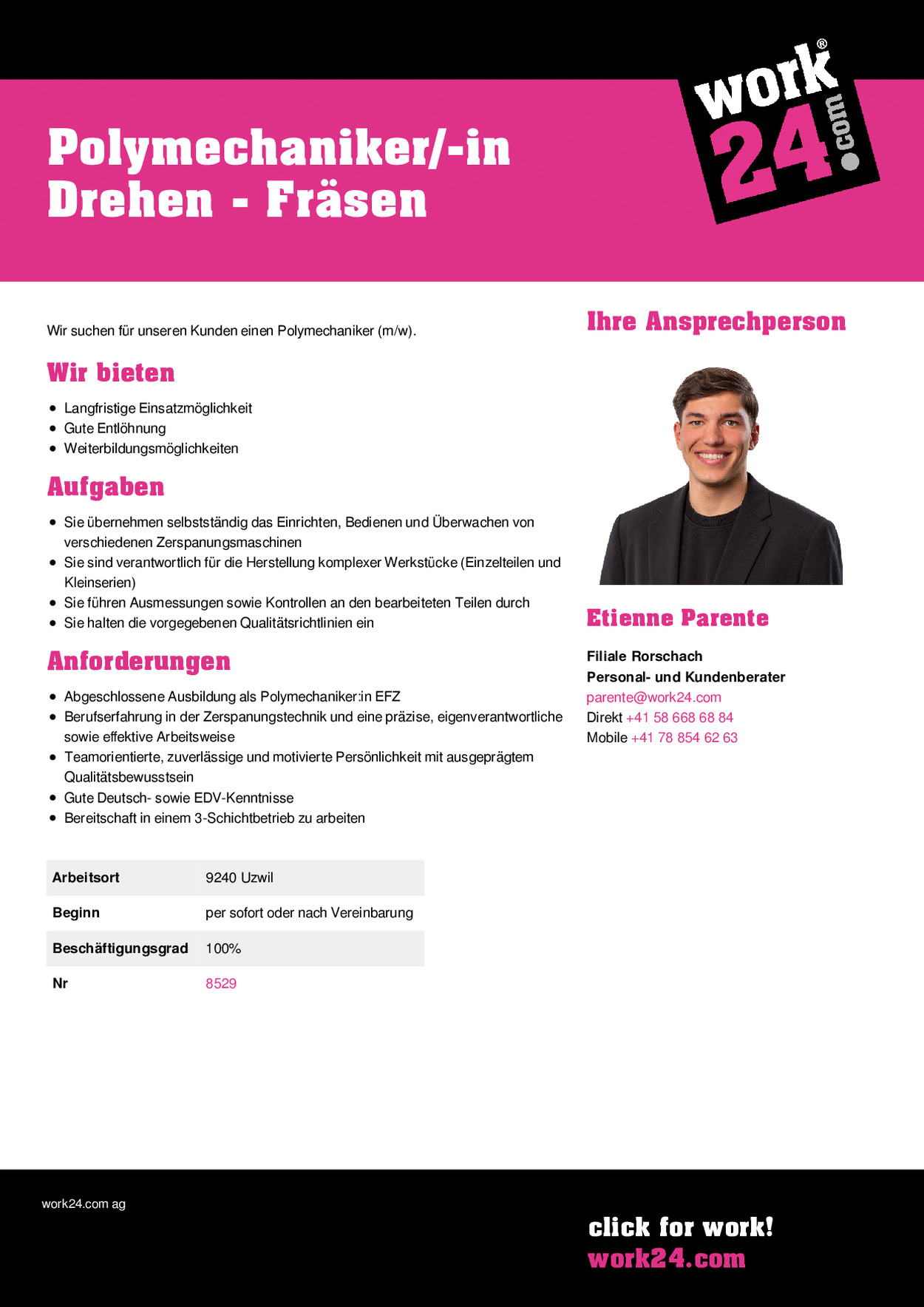 Polymechaniker/-in Drehen - Fräsen in Uzwil