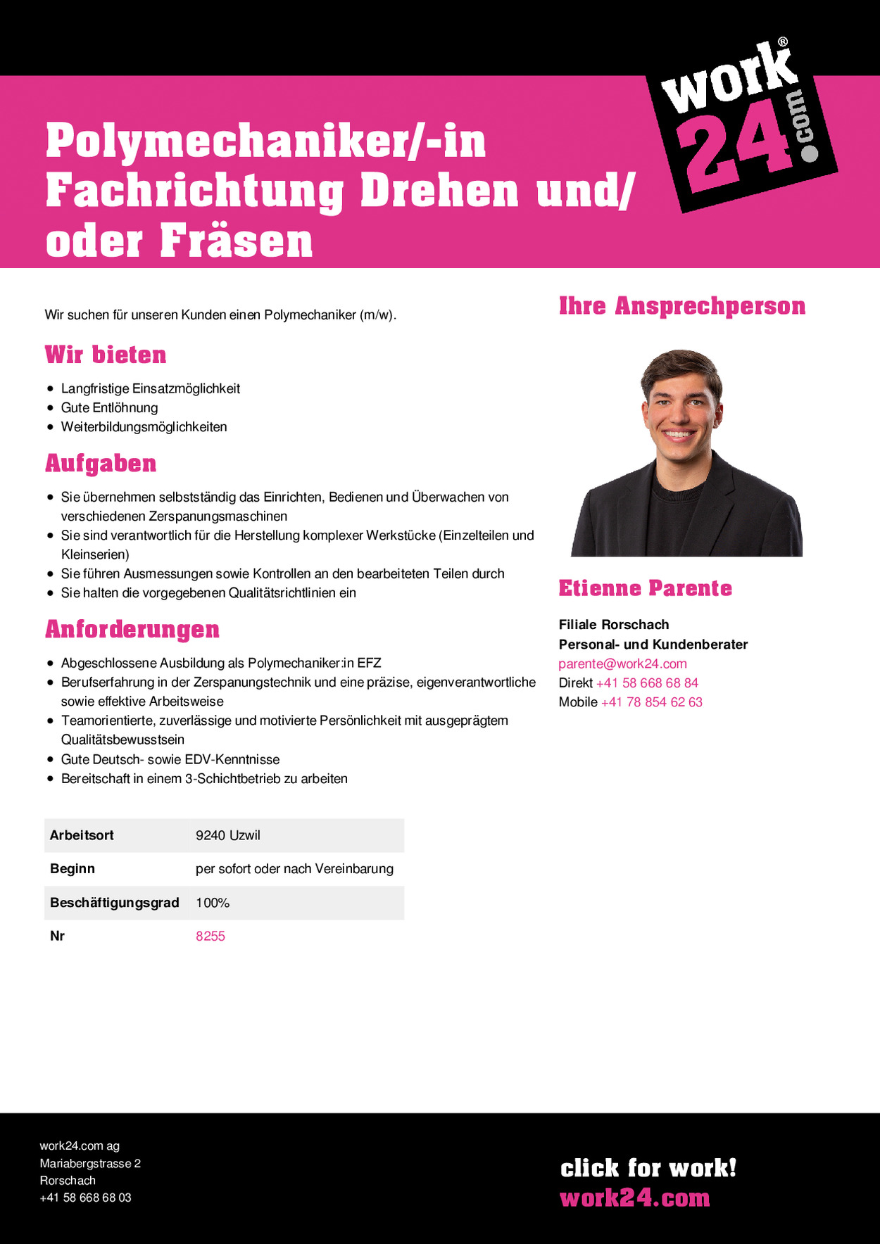 Polymechaniker/-in Fachrichtung Drehen und/ oder Fräsen in Uzwil