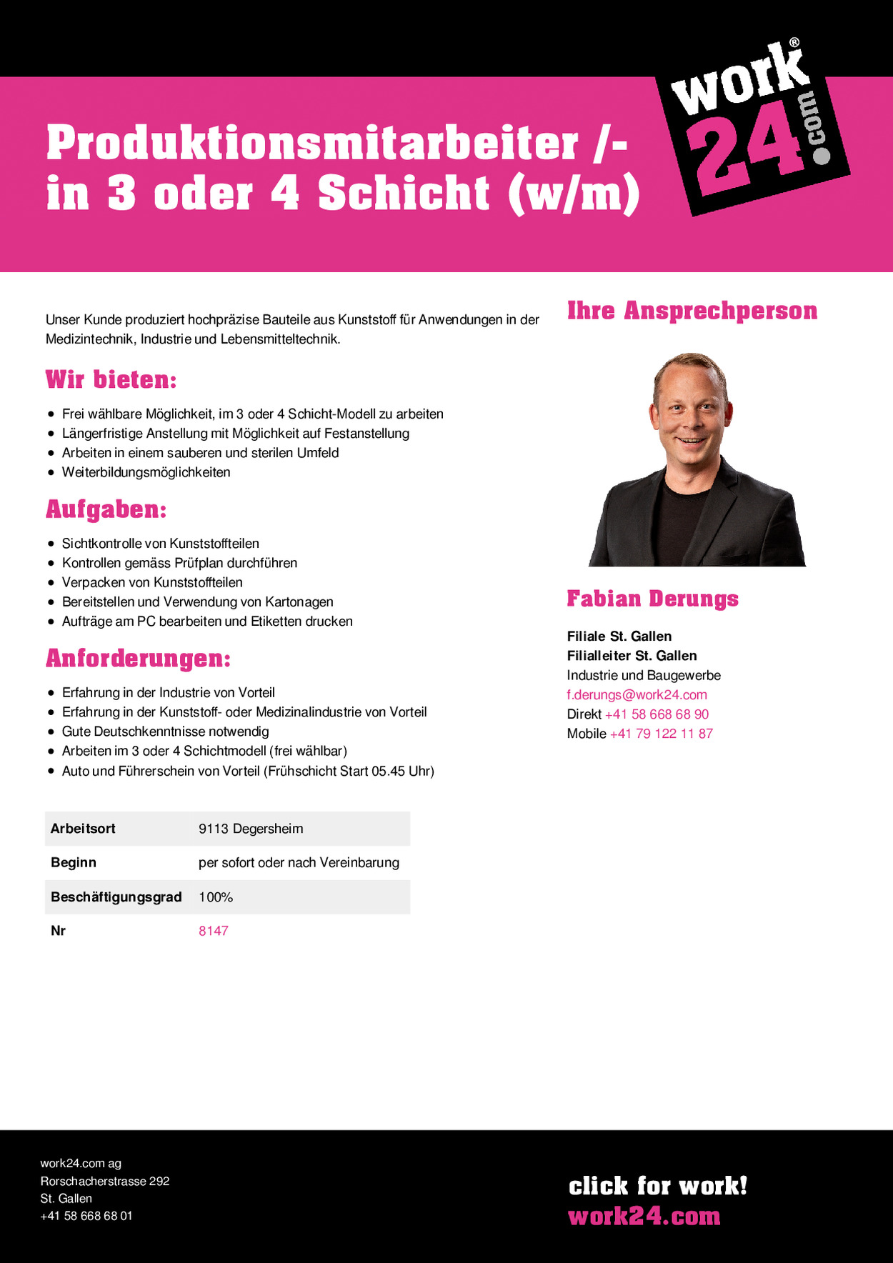 Produktionsmitarbeiter /-in 3 oder 4 Schicht (w/m) in Degersheim