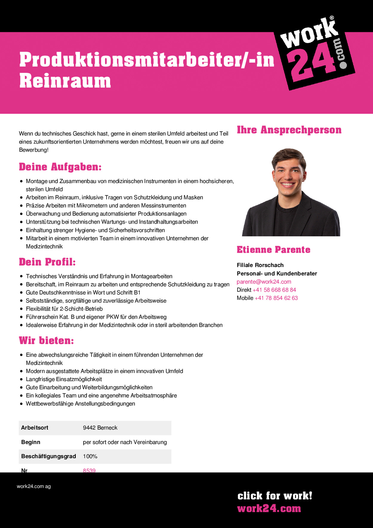 - Idealerweise Erfahrung in der Medizintechnik oder in steril arbeitenden Branchen