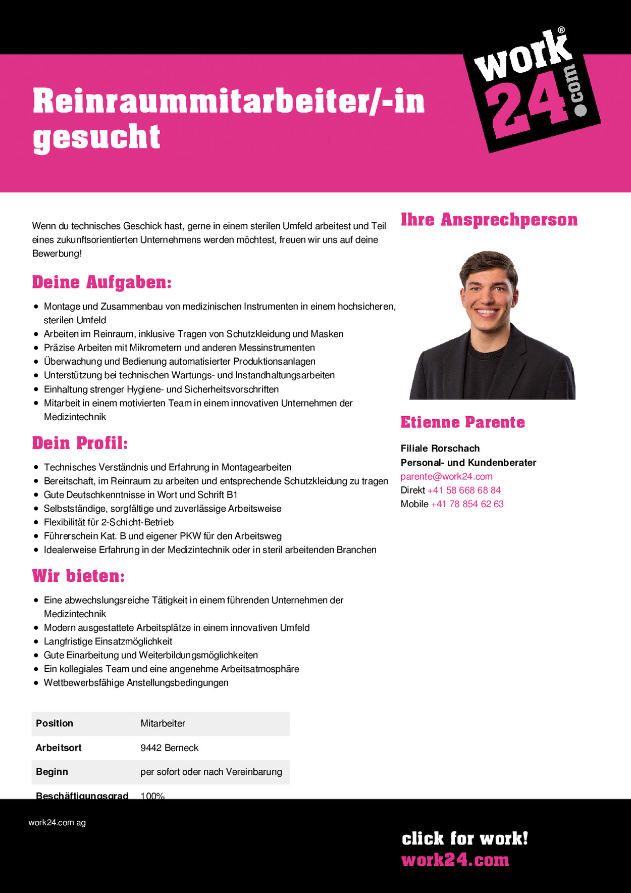- Idealerweise Erfahrung in der Medizintechnik oder in steril arbeitenden Branchen