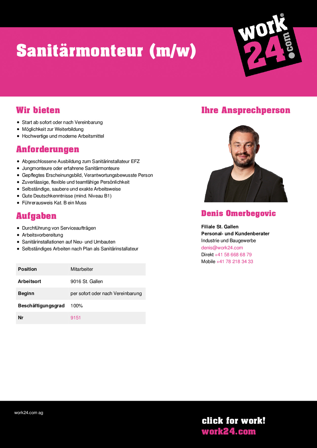 - Abgeschlossene Ausbildung zum Sanitärinstallateur EFZ
