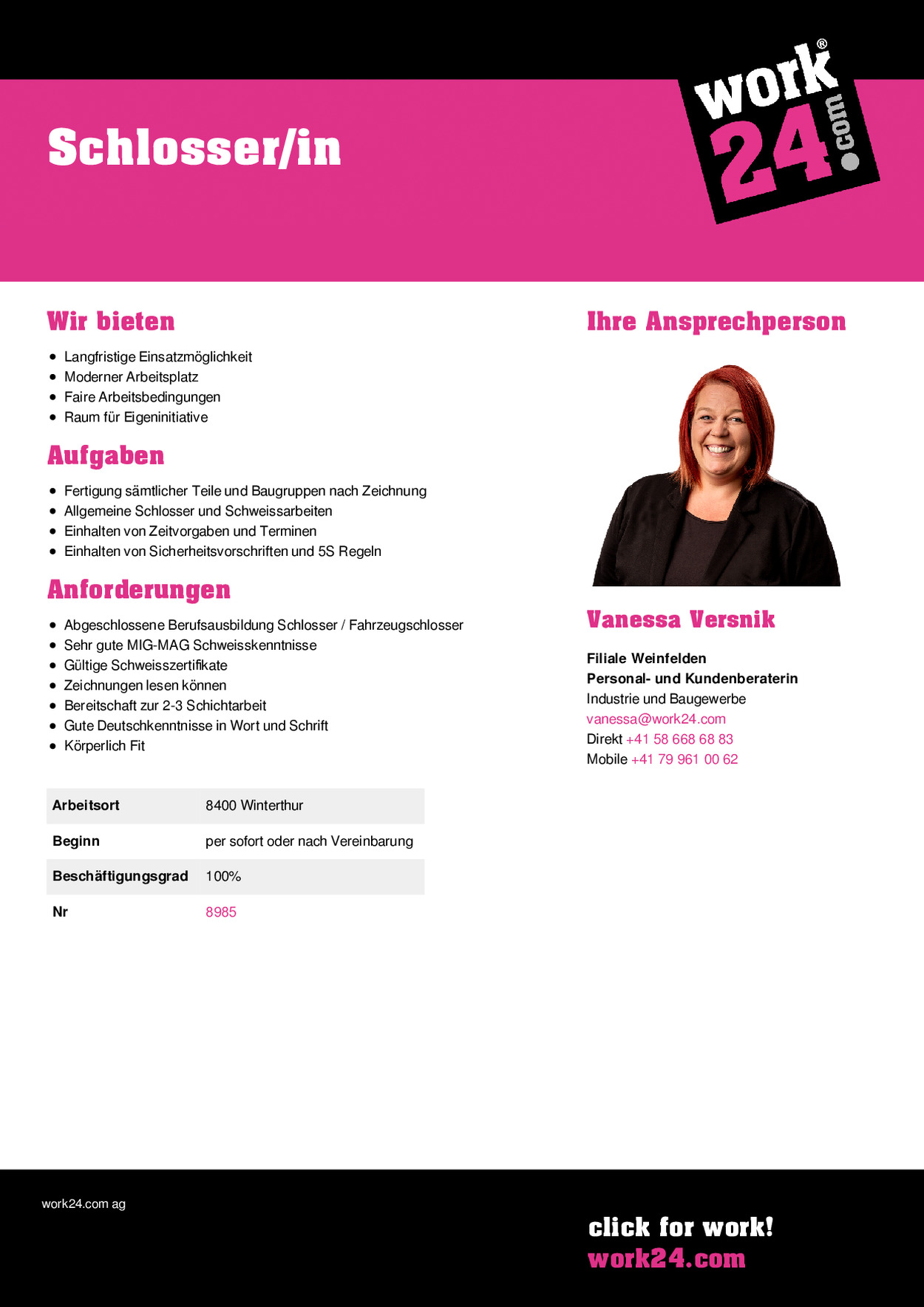 - Abgeschlossene Berufsausbildung Schlosser / Fahrzeugschlosser
