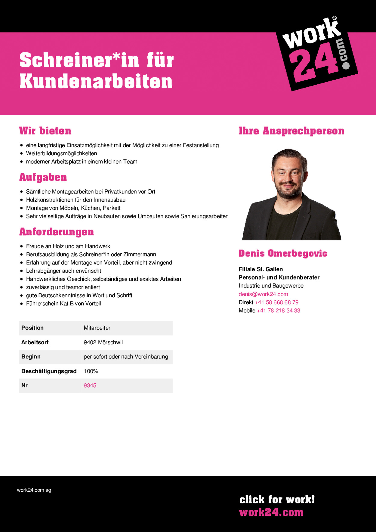 Schreiner*in für Kundenarbeiten in Mörschwil