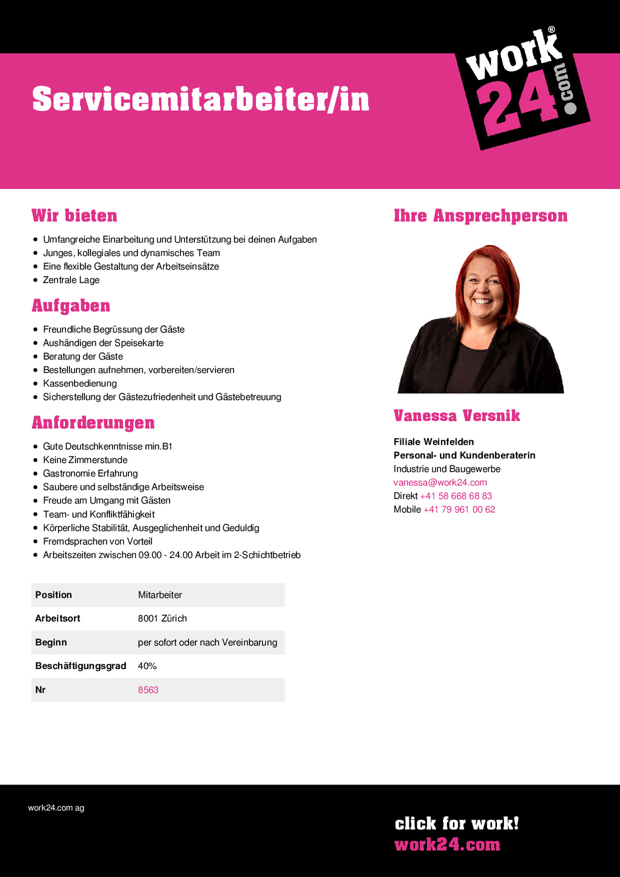 | Arbeitsort | 8001 Zürich |