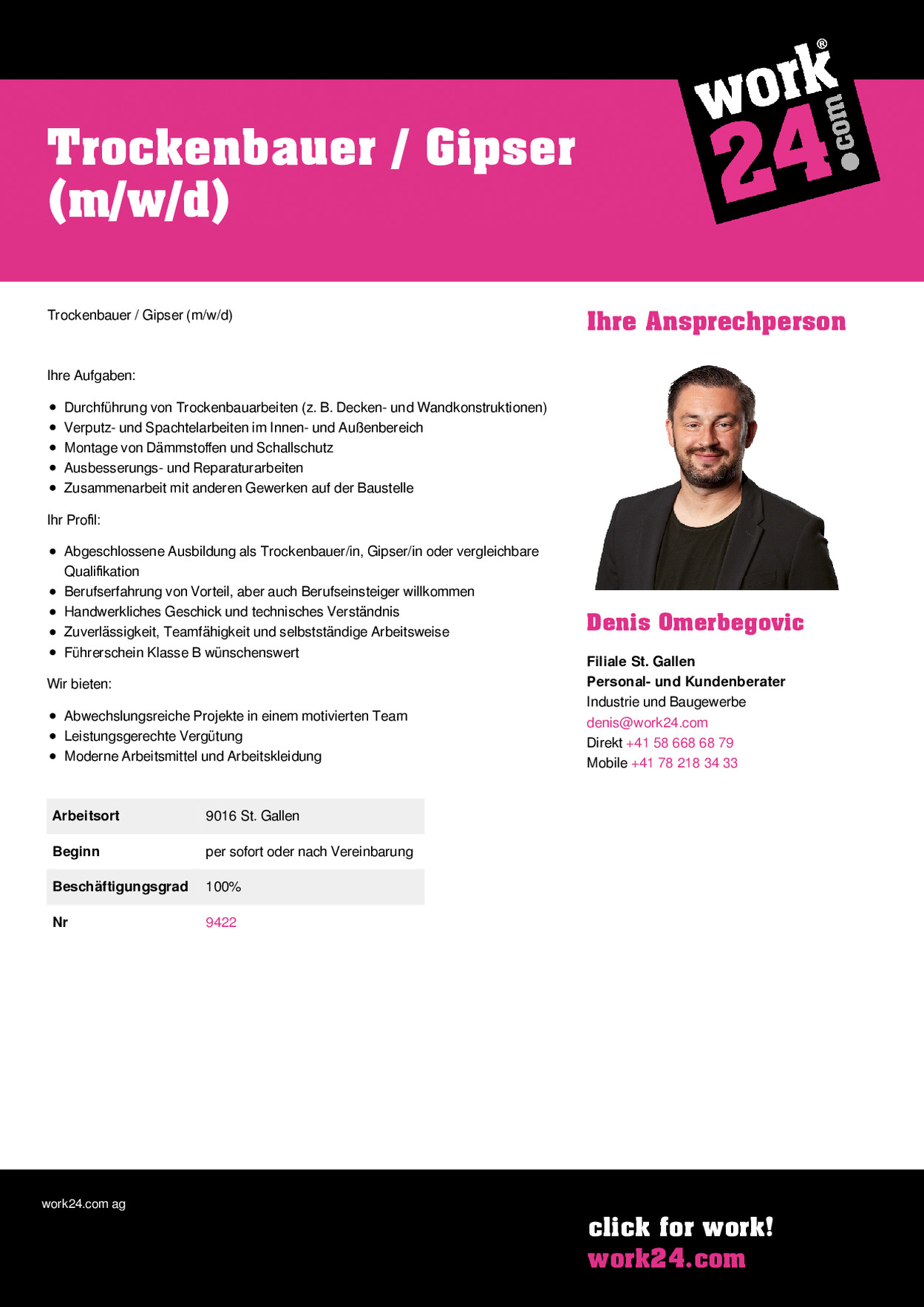 Trockenbauer / Gipser (m/w/d) in St. Gallen